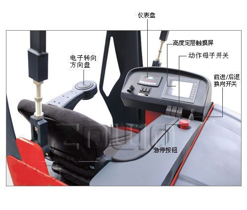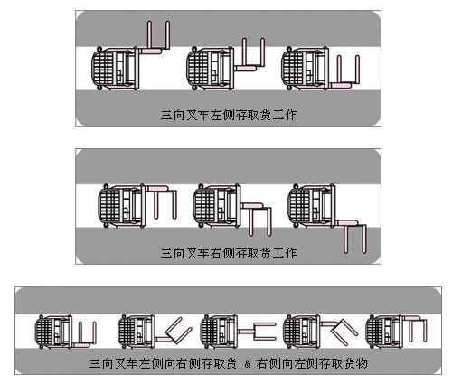 4.三向堆垛叉車采用全交流控制器、高效率、低噪音,