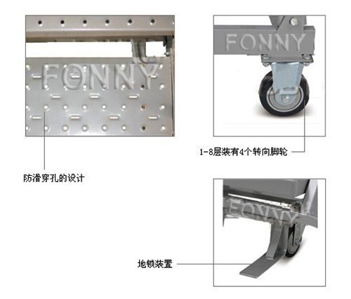 • 梯子面防滑穿孔設計,有效的保護工作人員在作業時的安全性