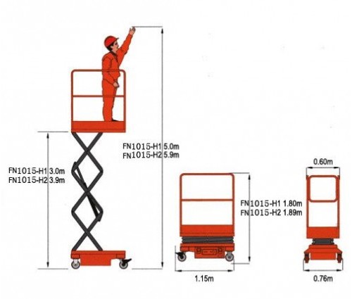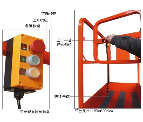 • 平臺(tái)尺寸1.15m×0.60m,適合在狹小的空間作業(yè);