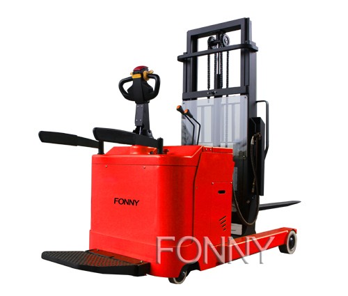 前移式電動堆高車,既具有普通電動堆高車的特點,又具有部分電動叉車的平衡重特征,作業范圍較大,轉彎半徑較少,適用于室內外作業。