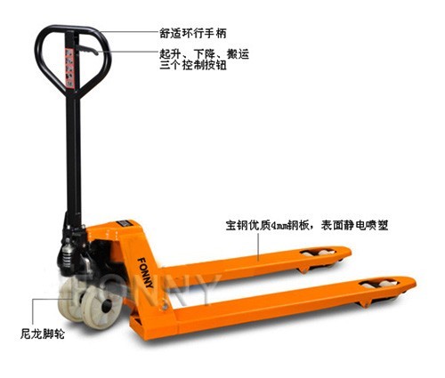 產品適用性:手動托盤車 是一切短距離搬運傳送作業的理想之選,該車擁有大載荷,既可搬運十分沉重貨物,也不畏懼非常規尺寸貨物,適用于搬運作業要求。