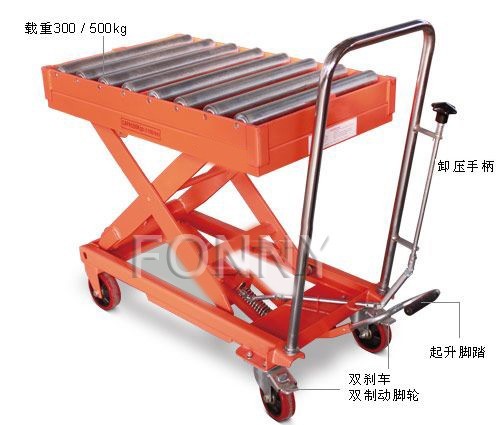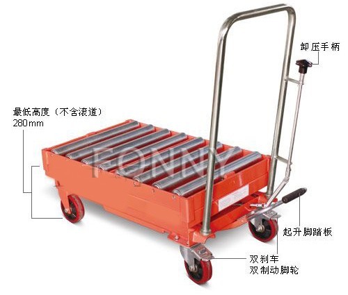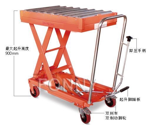 • 通過腳踏式液壓泵工作,方便地使平臺起升至所需高度;