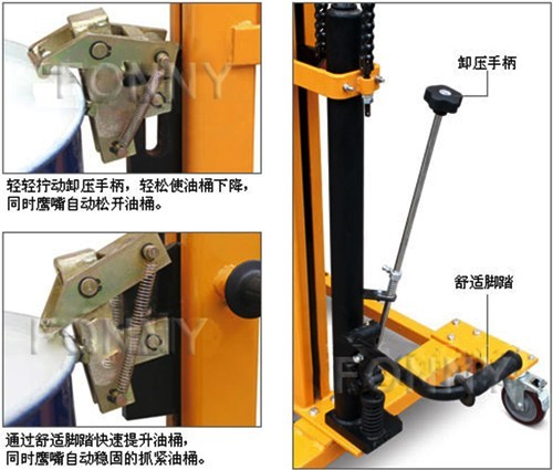 • 起升高度較高,適用于對小型卡車上的油桶進行裝卸及搬運操作